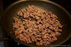 Brown ground beef in skillet and drain most of the excess fat, leaving a small amount
